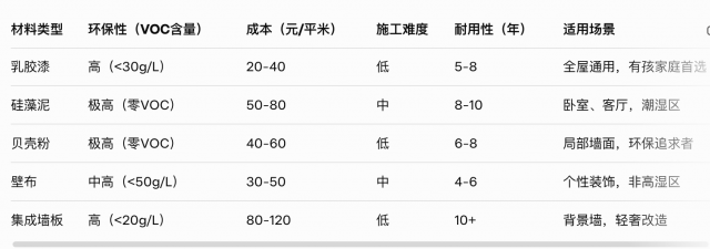 选材的核心是“环保+实用”。环保指低VOC、零甲醛认证(如中国环境标志产品);实用则包括耐擦洗(≥2万次不掉色)、施工简易(无需专业工具)。预算控制在每平米20-50元即可覆盖主流产品,避免盲目追求高端而忽略性价比。