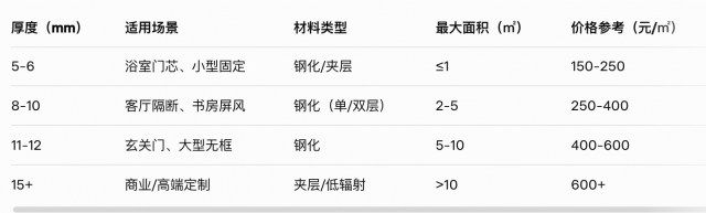 为便于大家理解,以下表格总结市场常见玻璃隔断厚度规格(基于GB 11614平板玻璃标准):