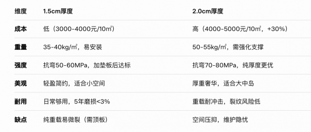 四、厚度对比:1.5cm vs 2.0cm,谁更适合厨房?